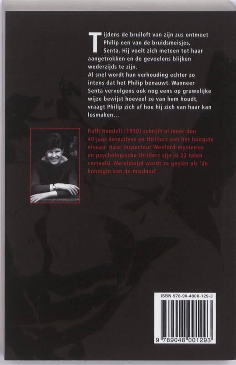 In Het bruidsmeisje van Ruth Rendell raakt Philip Wardman tijdens de bruiloft van zijn zus verliefd op Senta, een van de bruidsmeisjes. Hun relatie wordt al snel intens, maar Senta blijkt een verontrustende obsessie voor Philip te hebben. Wanneer zij op gruwelijke wijze haar liefde voor hem bewijst, beseft hij dat hij gevangen zit in een gevaarlijk web van leugens en manipulatie. Rendell weeft in dit verhaal meesterlijk spanning en psychologische diepgang, wat leidt tot een onverwachte en verontrustende ontknoping.